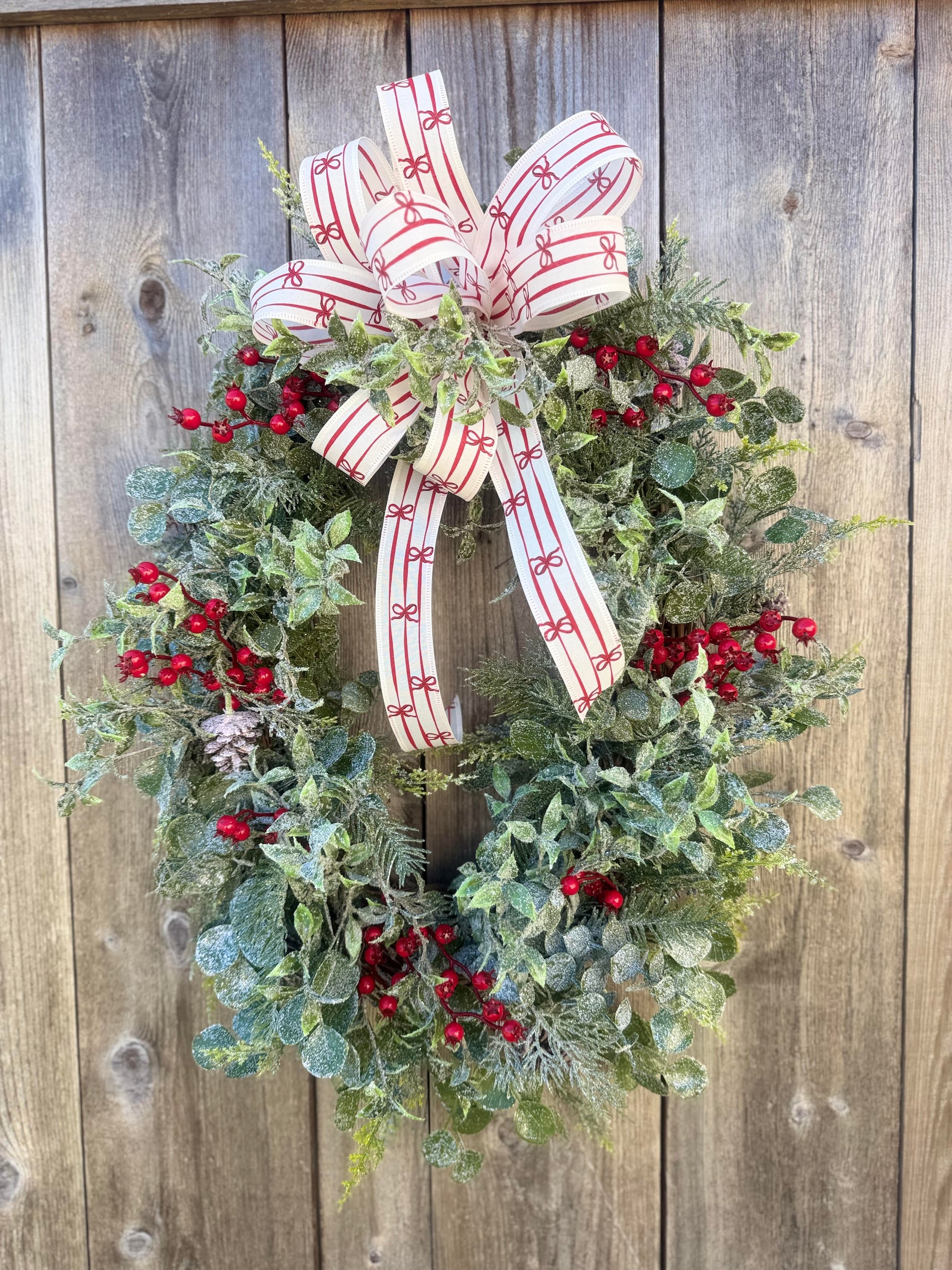 Bring seasonal elegance to your home with this stunning eucalyptus garland wreath. Crafted on a natural grapevine base and adorned with lush eucalyptus and complementary winter foliage, it creates an inviting focal point for any entryway or wall. The soft, silvery-green tones of eucalyptus pair beautifully with rich winter botanicals, offering a fresh, organic aesthetic that feels both modern and timeless. Perfect for holiday decorating or extending your seasonal style well into winter, this wreath brings the calming essence of nature indoors while adding sophisticated charm to your décor.