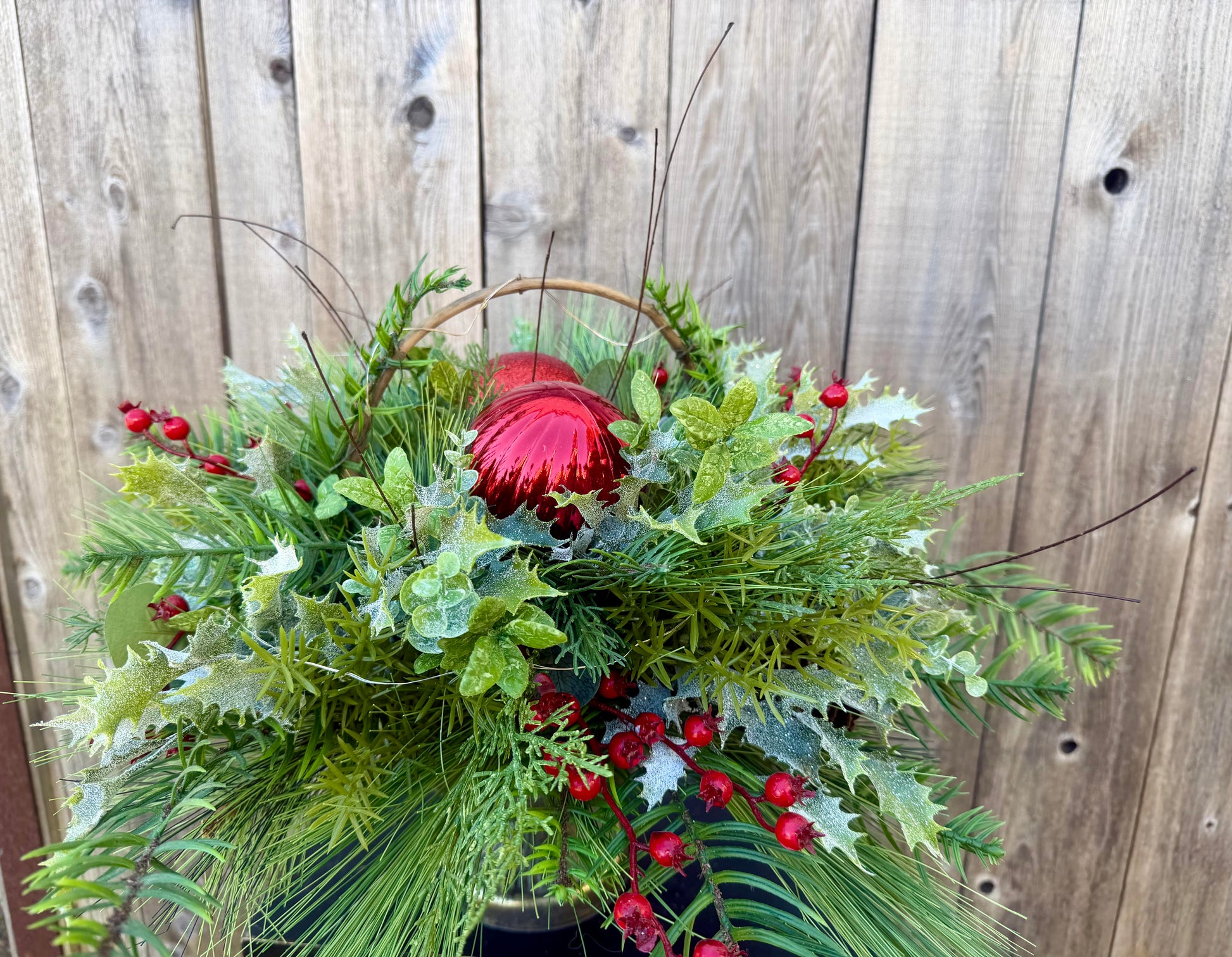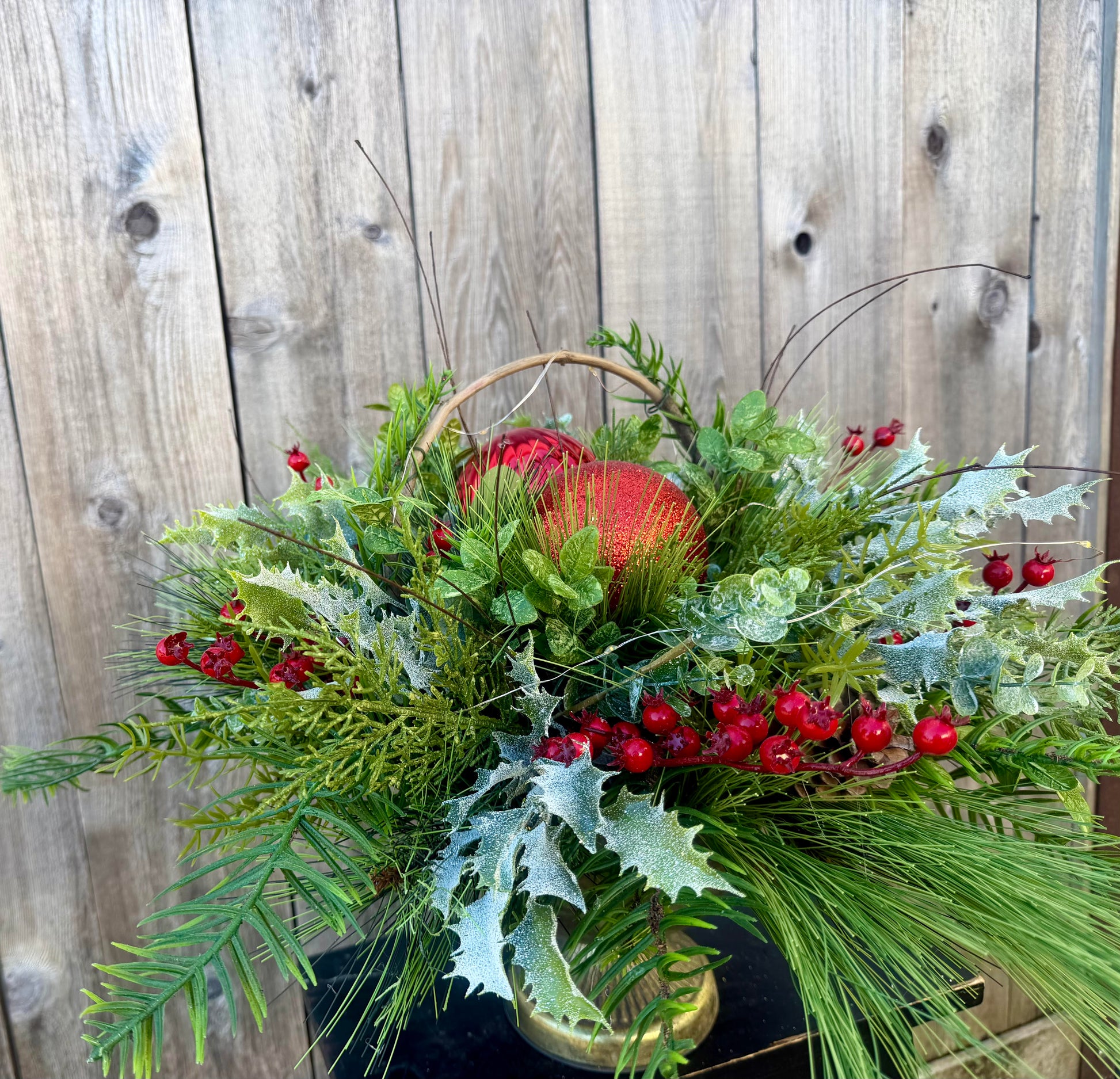 Transform your holiday décor with this enchanting lighted Christmas centerpiece. Nestled in a charming vintage metal tin, it features lush winter foliage accented with vibrant red ornaments that catch the warm glow of integrated lighting. Perfect for mantels, tables, or entryways, this ready-to-display piece brings festive elegance and cozy ambiance to any room. The timeless tin container adds rustic charm while the soft illumination creates an inviting holiday atmosphere. An effortless way to elevate your seasonal styling without the fuss of decorating from scratch.