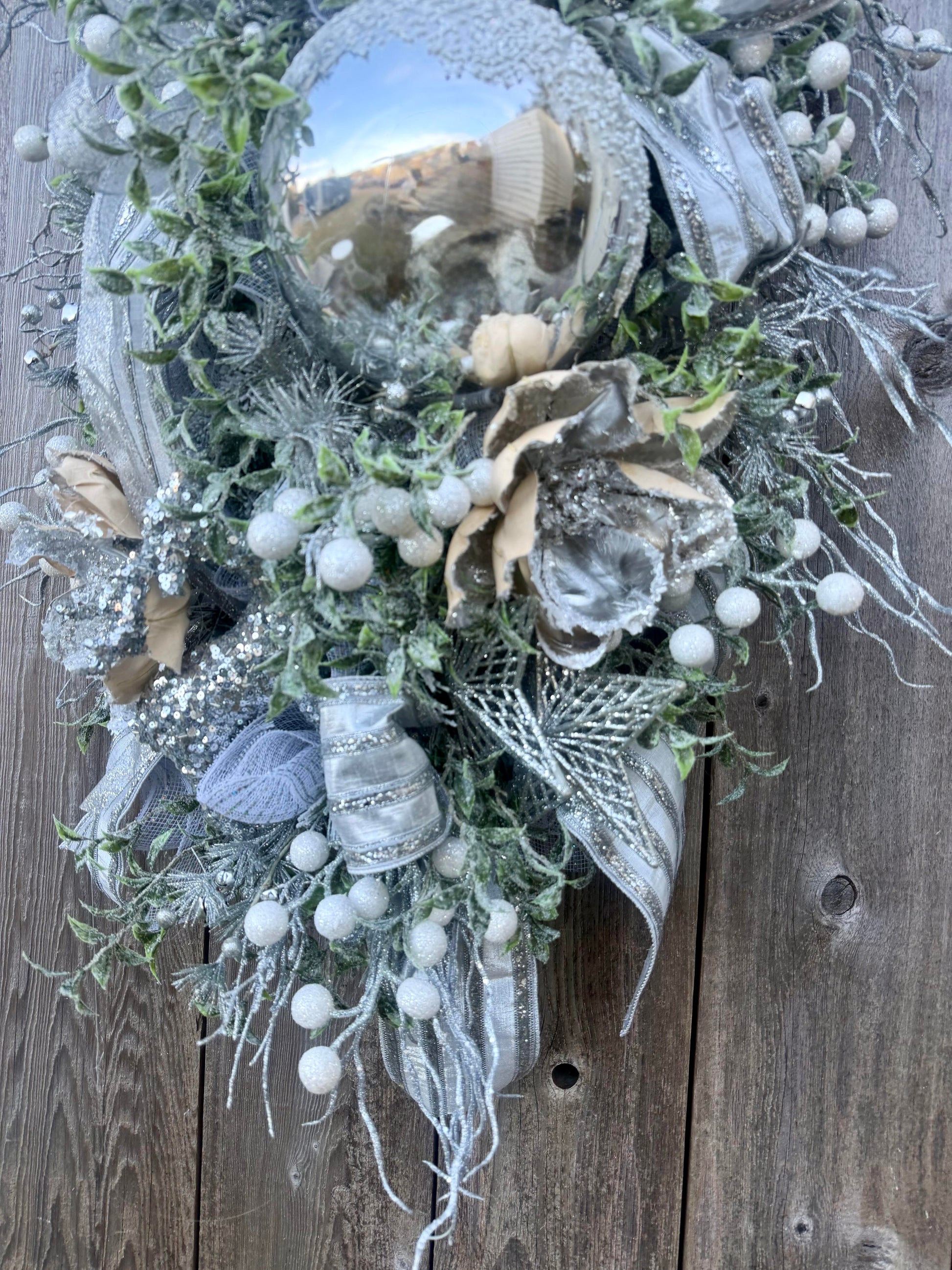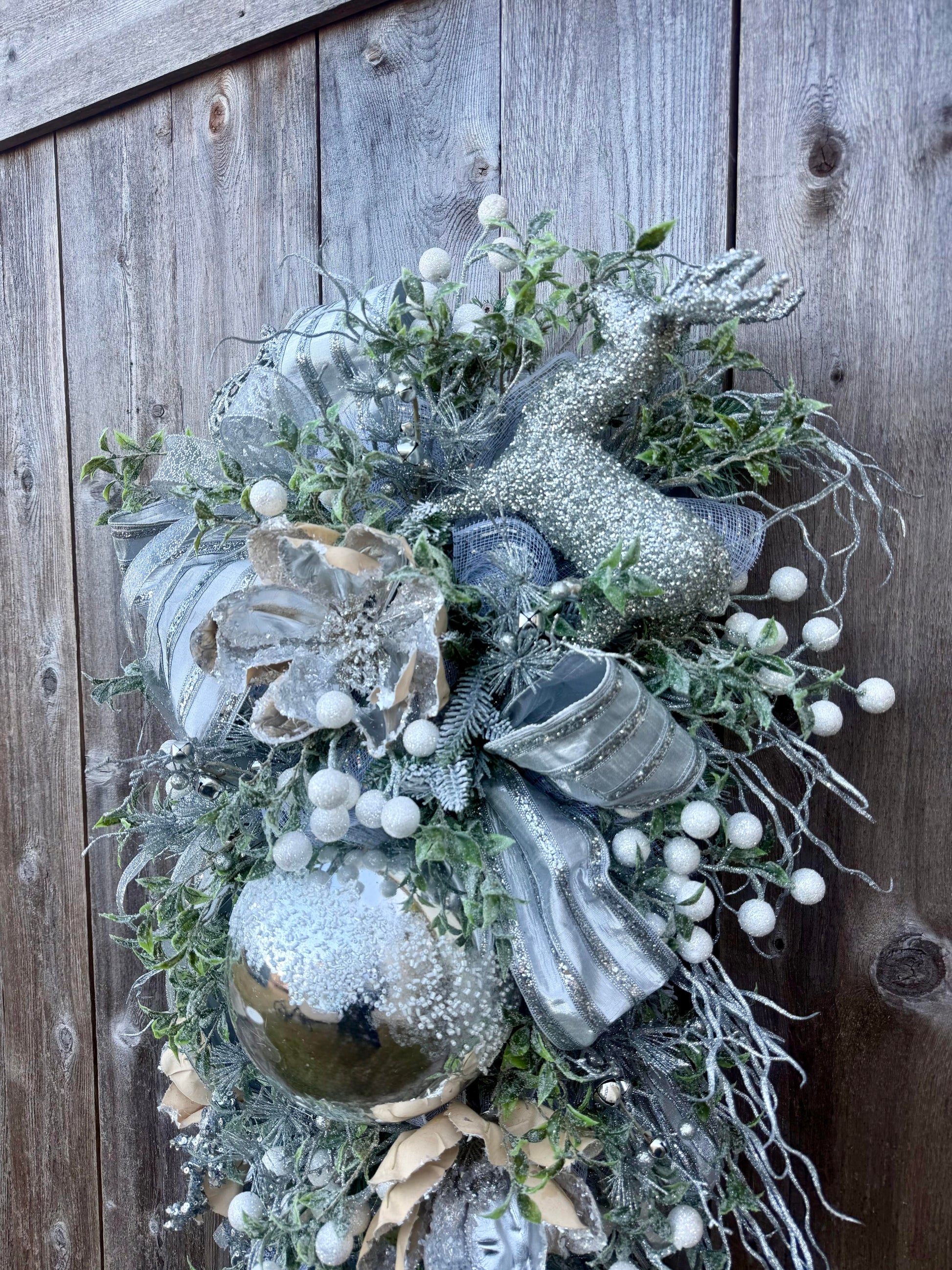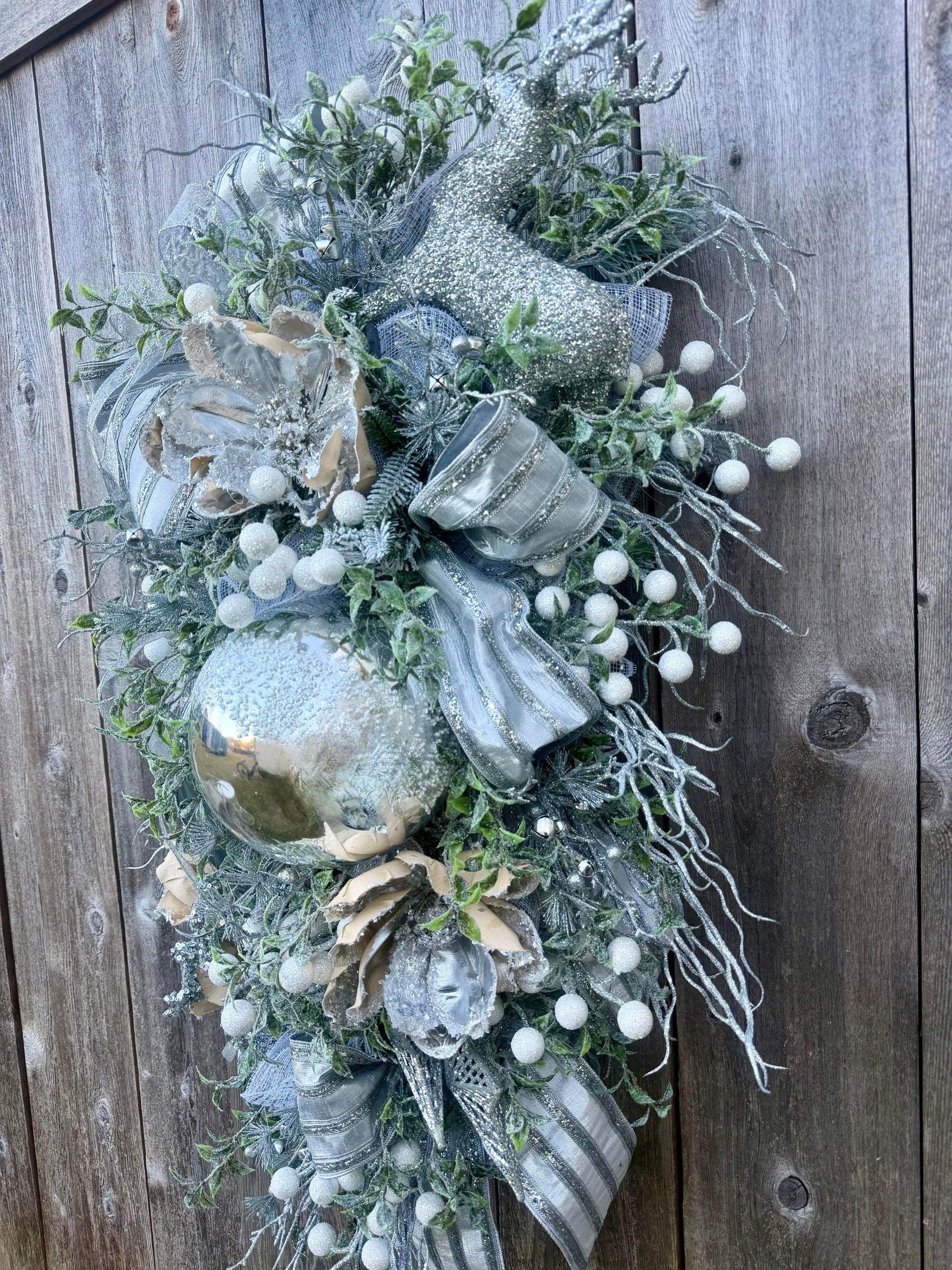 Transform your home into a winter wonderland with our Silver and White Christmas Swag! Perfect for adding a touch of elegance to your holiday decor, this large door hanger features a stunning combination of white and silver. Bring the magic of the season to your doorstep with this beautiful swag.
